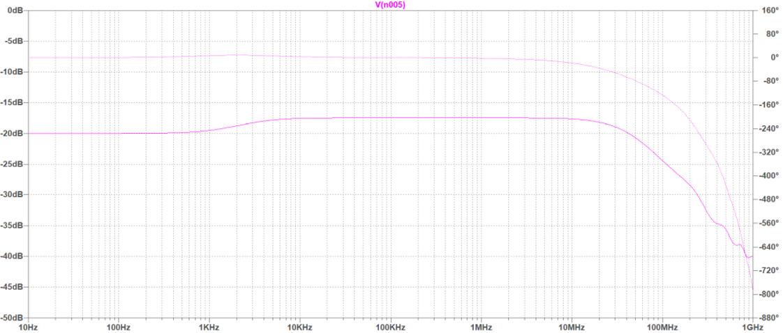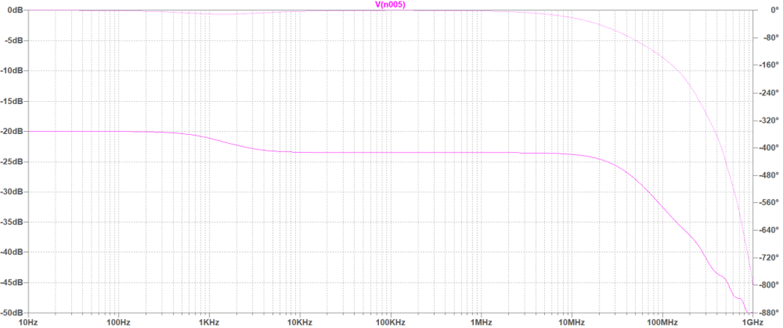 この回路の周波数特性を電子回路シミュレータ LTspiceで解析(AC解析)します.