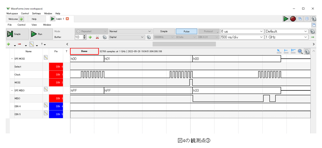 SPIシリアル信号を観測する