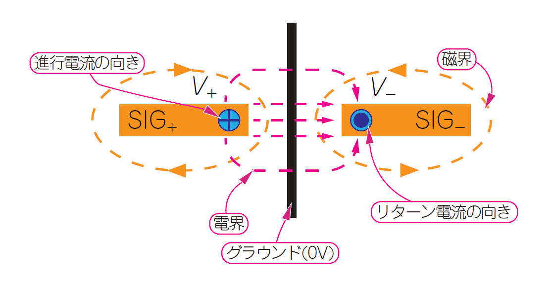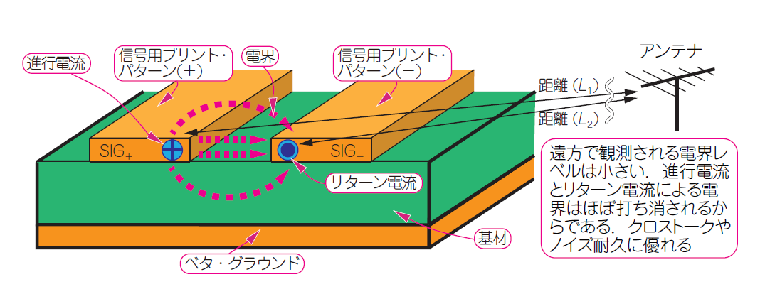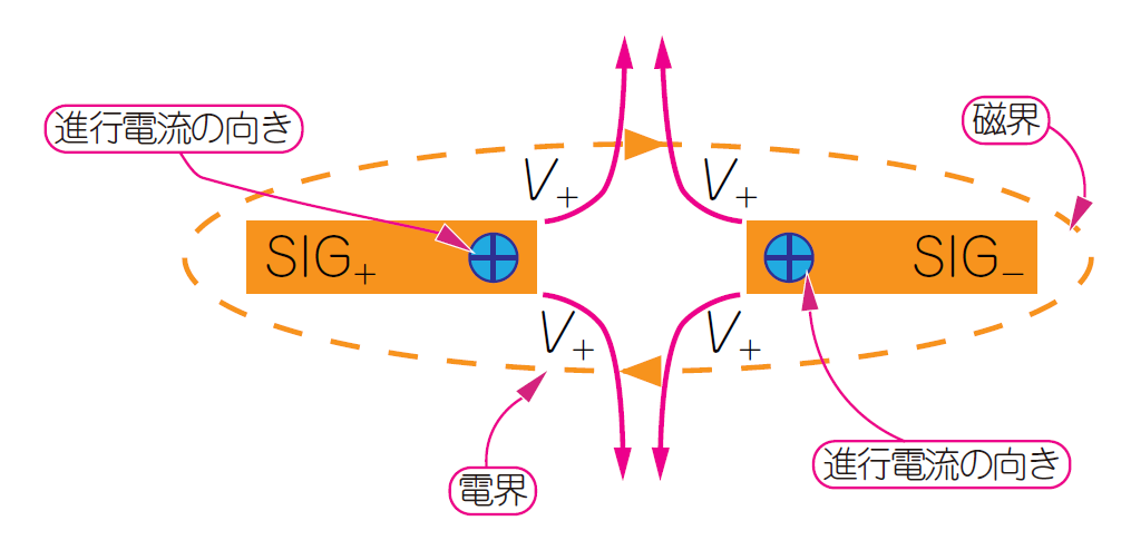 専用のリターン線路とペアにして相殺する