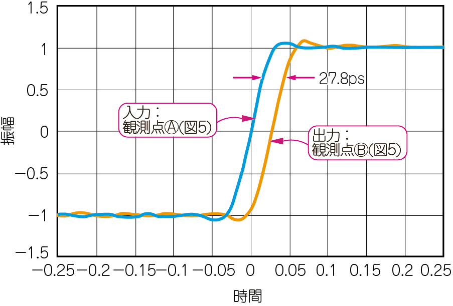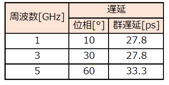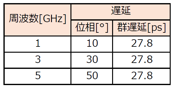 | 表1 図5の伝送路に1GHz,3GHz,5GHzを入力したときの遅延量 |