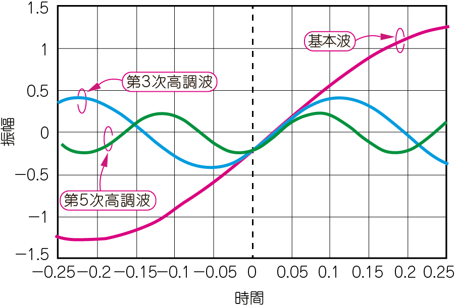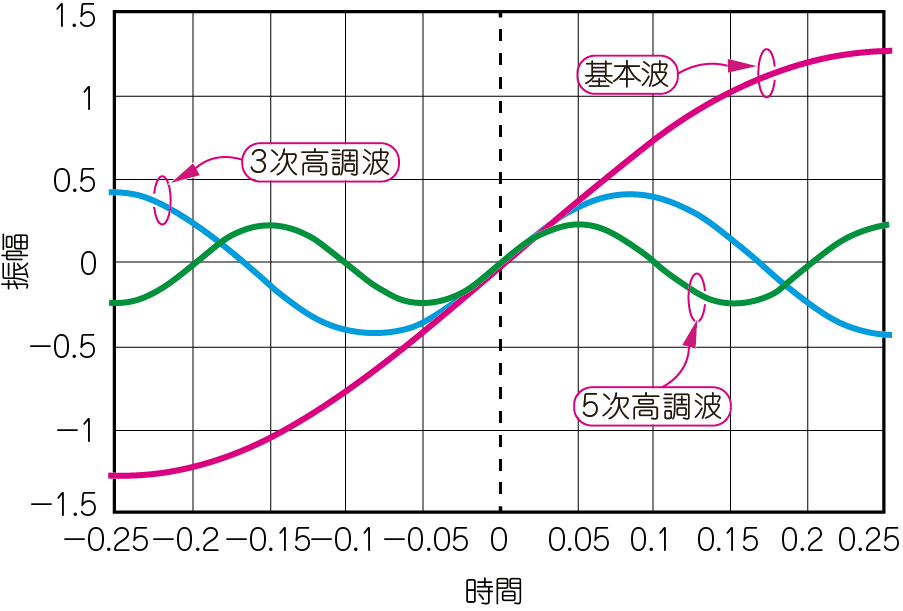 | 図4 15次高調波までの単一周波数の正弦波を足し合わせた波形 | |