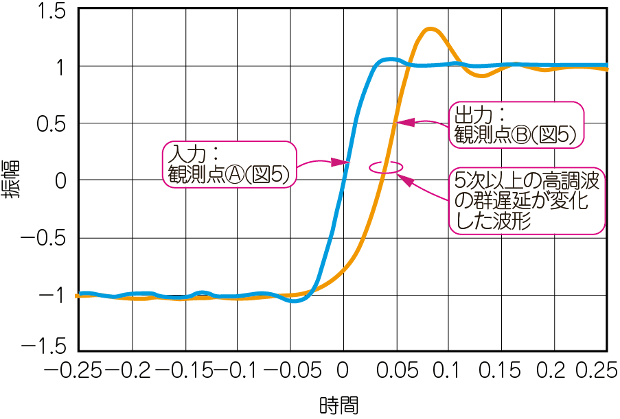 伝送路ではなく,回路が大きな群遅延の悪化要因になることがよくあります.特にアナログ・フィルタは,カットオフ周波数付近で大きく群遅延を変化させます.精度の高い波形が要求されるときは,信号帯域とカットオフ周波数を離したり,群遅延特性に優れるベッセル・フィルタを採用する例もあります.