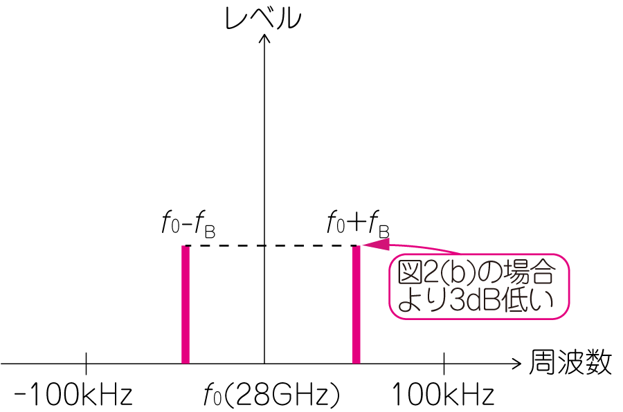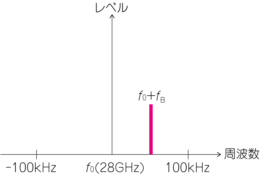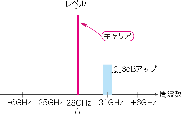 $I$信号=$Q$信号=CW信号と$I/Q$キャリア(28GHz)を掛け合わせて周波数アップ