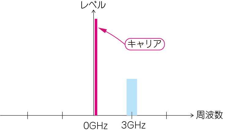 ベースバンドのスペクトラムは,キャリア周波数の両側に発生します.