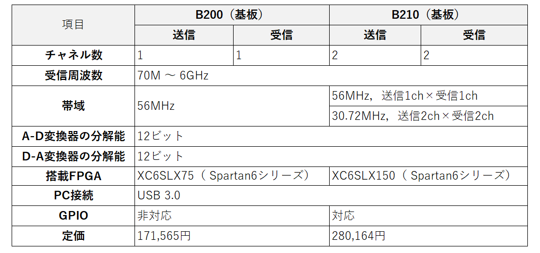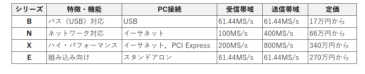 表1に,USRPシリーズのファミリを示します.