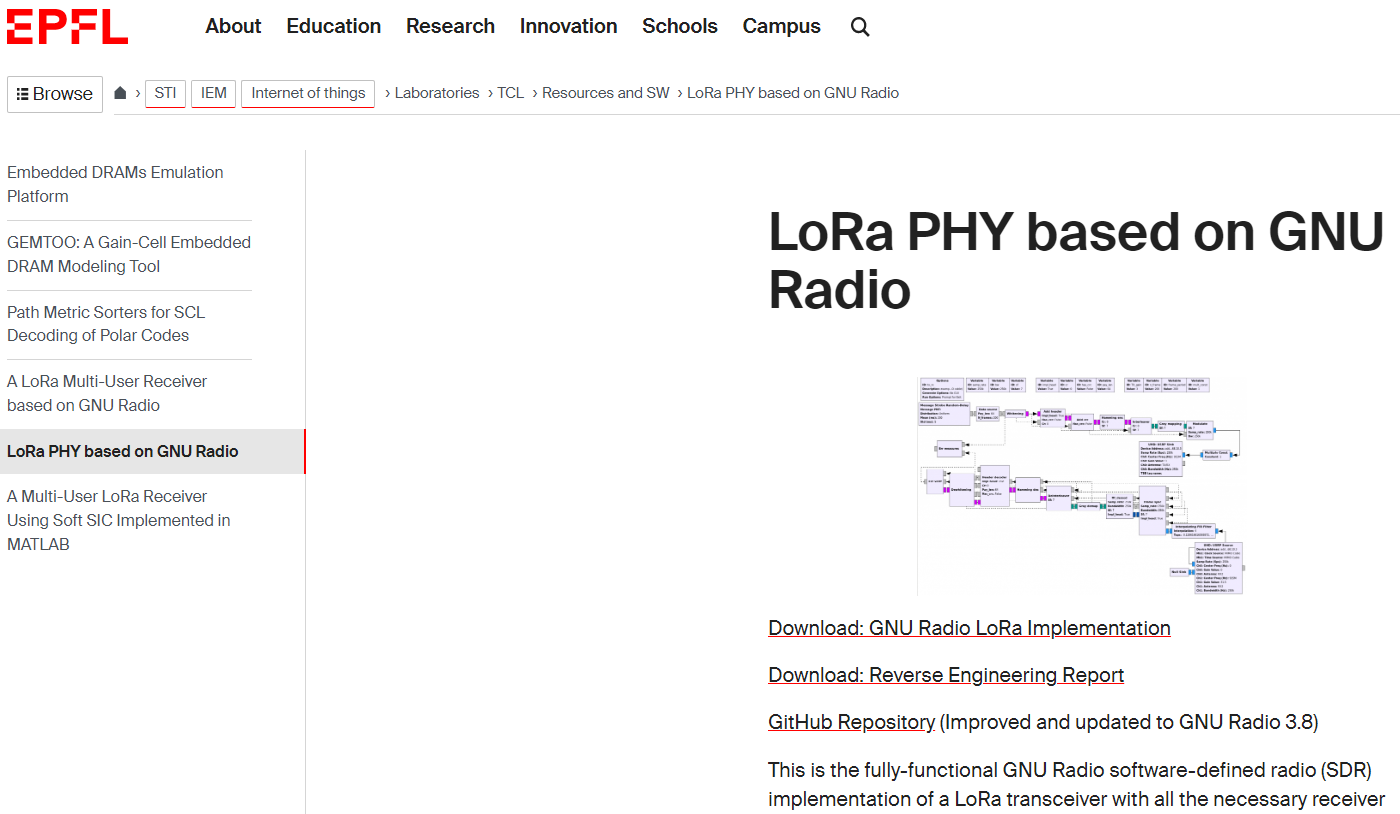 | 図20 スイス連邦工科大学ローザンヌ校(EPFL)がLoRa変復調用のGNU Radio向けソース・コード“LoRa PHY based on GNU Radio”を開発して公開していることを突き止めた |