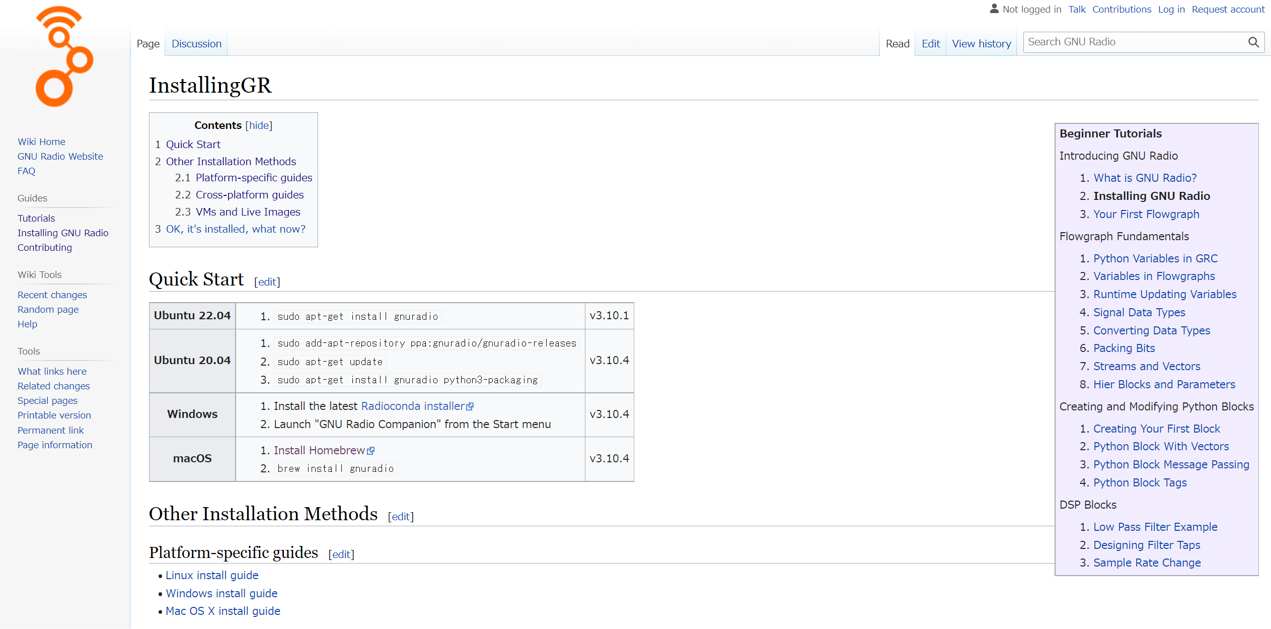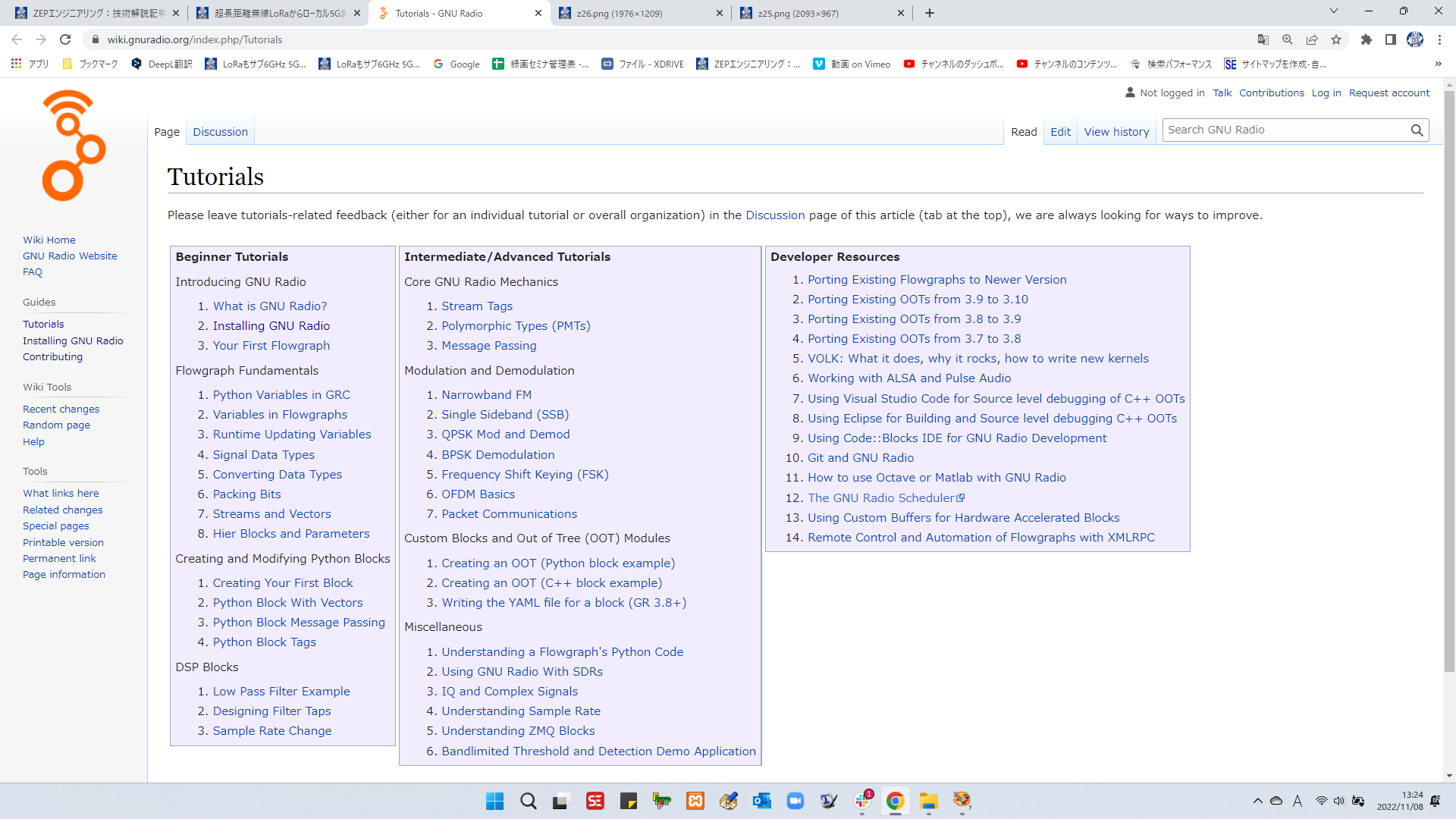 図25のGNU Radioのウェブ・ページには,GNU Radioに関するより詳しい情報がありますが,とりあえず“Installing”(図26)と“Tutorials”(図27)を参照することをお勧めします.インストールでつまづいた場合も,このページが参考になるでしょう.QPSKやOFDMなど変復調信号処理の実装例や独自の信号処理ブロック“OOT”の作り方の詳細も記載されています.