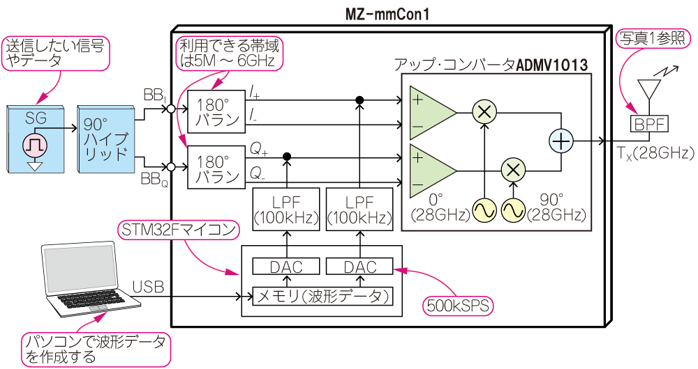 ミリ波5G対応アップ・ダウン・コンバータ mz-mmcon1と組み合わせて利用することができます.また,ダイバシティ・アンテナと組み合わせてフェージングに強い受信システムを作りることも可能です.バランス・アンプやアンテナ・フィード,フェーズ・シフタなど,さまざまなRFシステムに使用できます.