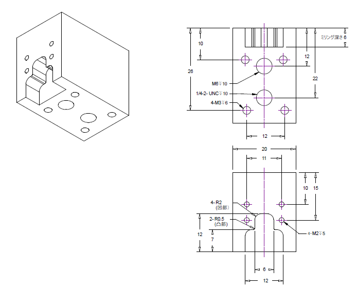 - 本アンテナ・キットのアルミ・ブロックの寸法図